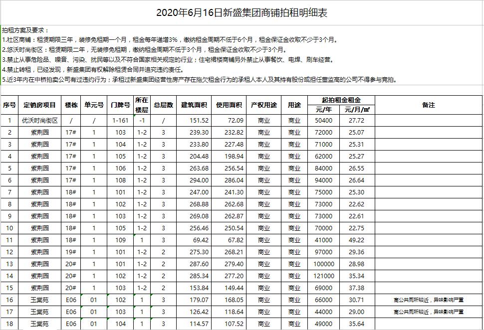 關(guān)注微信公眾號(hào)我公司受委托,定于2020年6月16日10時(shí)在中山南路55號(hào)三樓本公司拍賣廳對(duì)以下小區(qū)商鋪公開拍租: