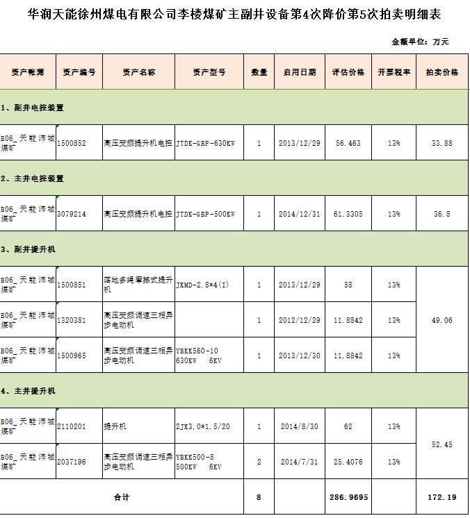 2、華潤(rùn)天能李樓煤礦二手礦用設(shè)備一批。主要包括:主副井提升機(jī)、主副井電控裝置、單雙梁起重機(jī)、副井高低壓開(kāi)關(guān)柜、主井低壓開(kāi)關(guān)柜、防爆全站儀等。(保證金10萬(wàn)元)